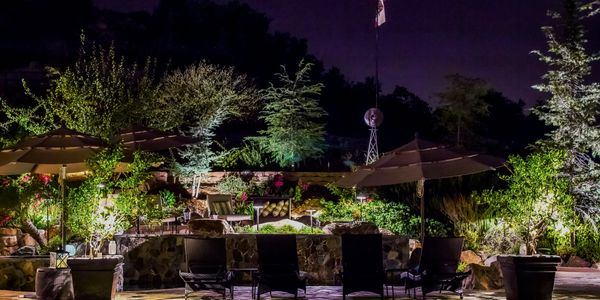 Creating focul points of your existing outdoor kitchens, seating areas, fire places, and water features. Without light, these features become unusuable. Lighting will bring out the full ambience of each space and put all the focus on the right things.